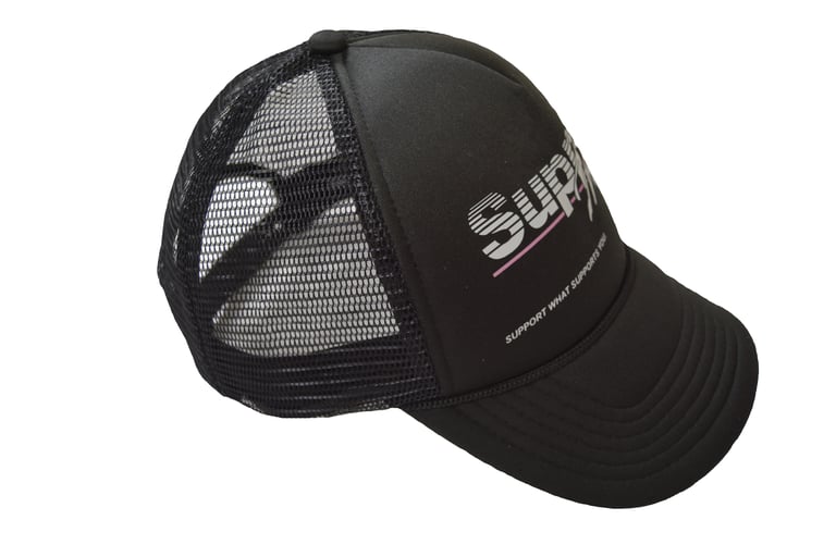 * BLACK MESH & FOAM TRUCKER HAT W/BLACK BRAID